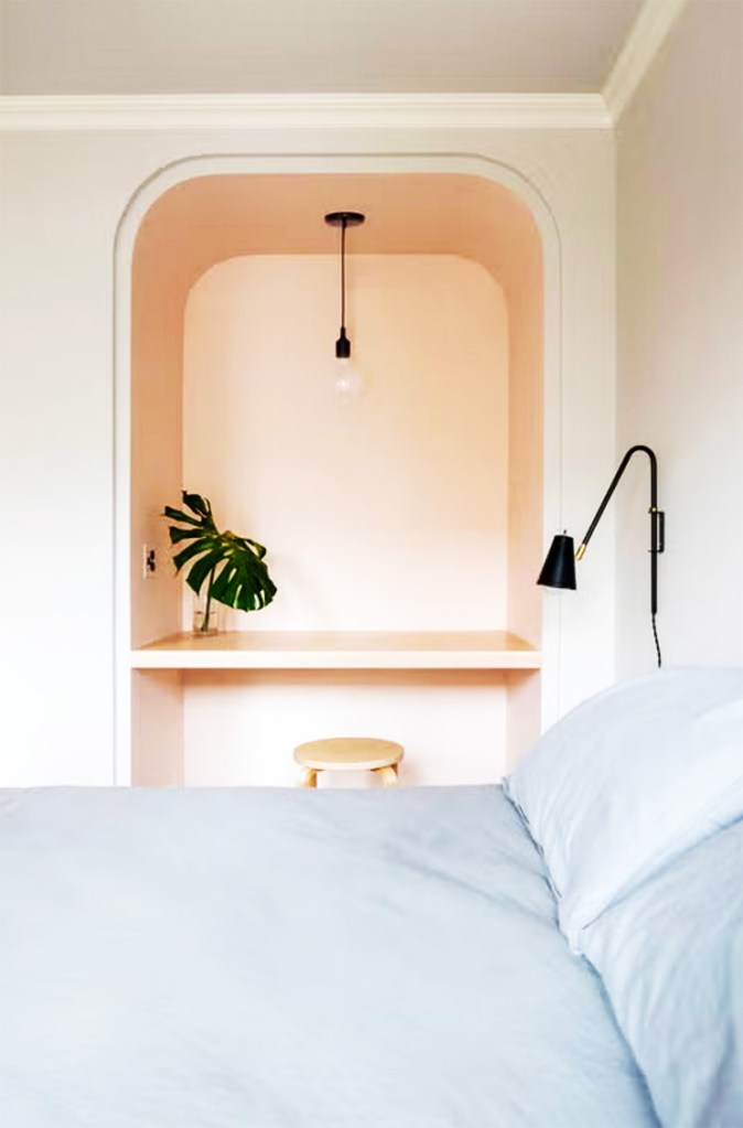 Take a look at this awesome idea: transform an architectural nook into a stylish and practical home office desk! Keep things tidy by adding ceiling-mounted lighting for a clean and bright workspace. And don’t forget to position the outlets where they’re easy to reach (ergonomically) —charging your gadgets has never been more convenient!